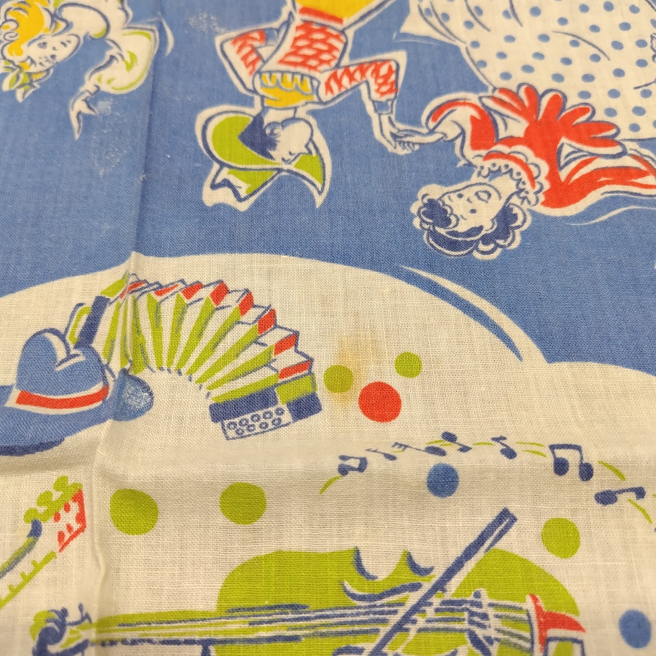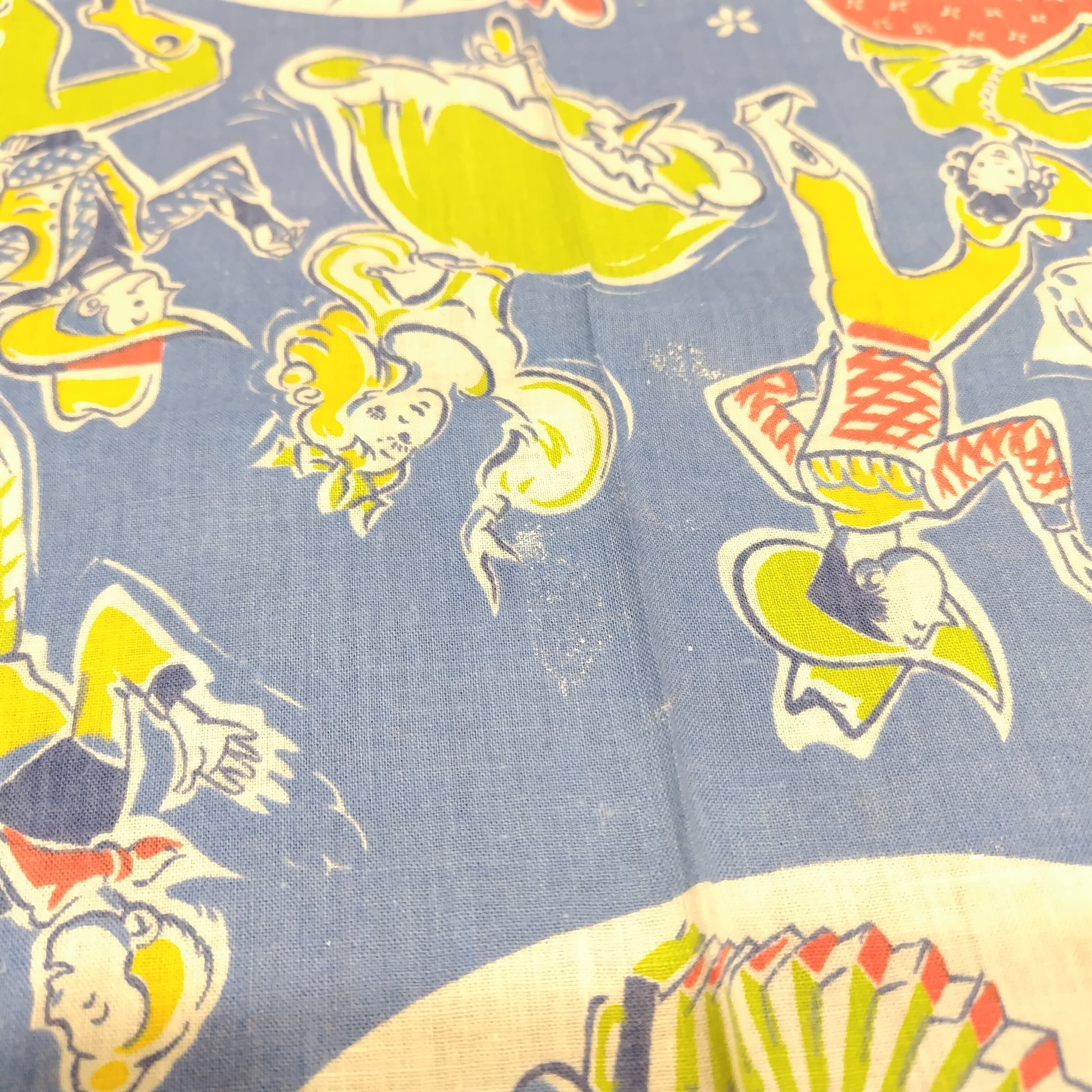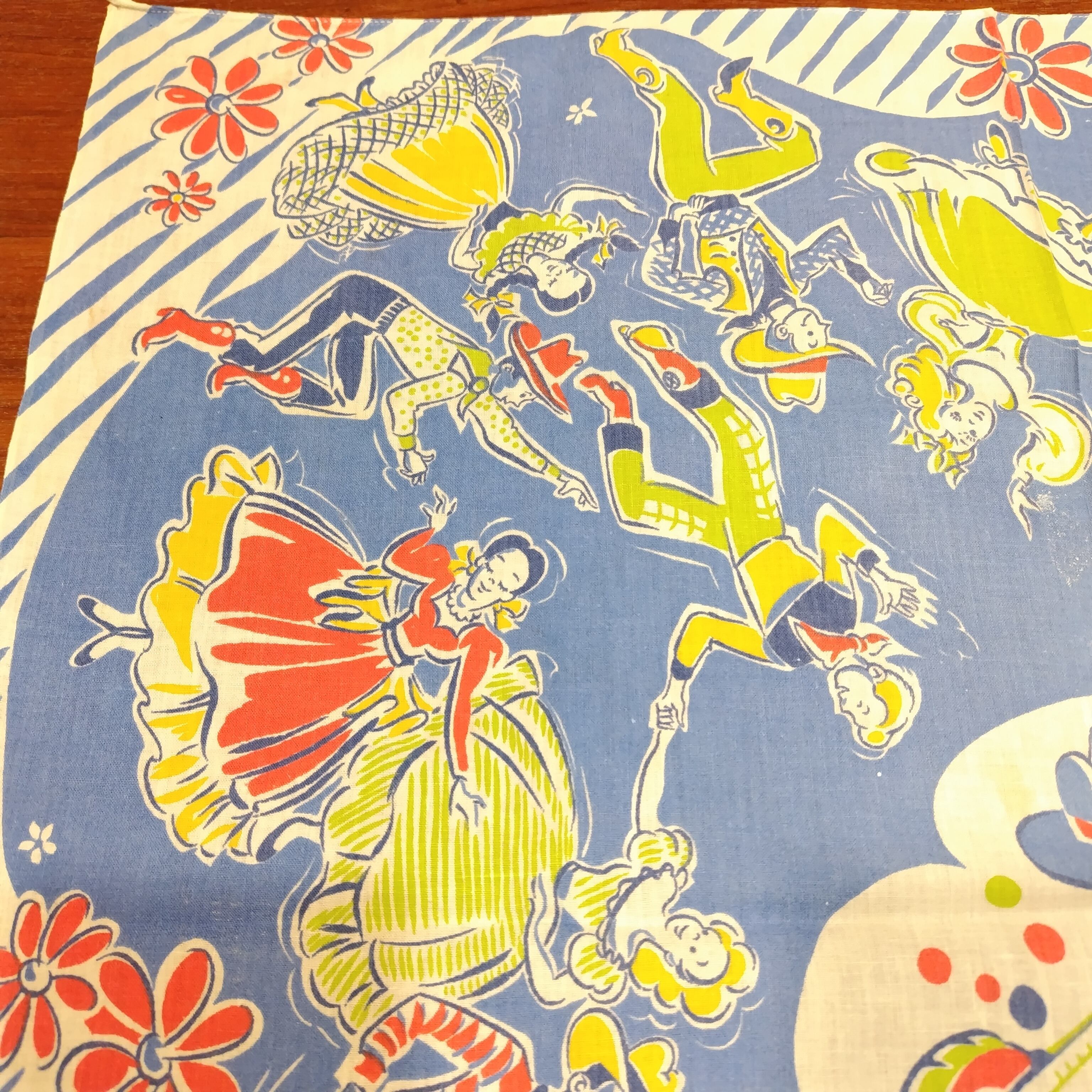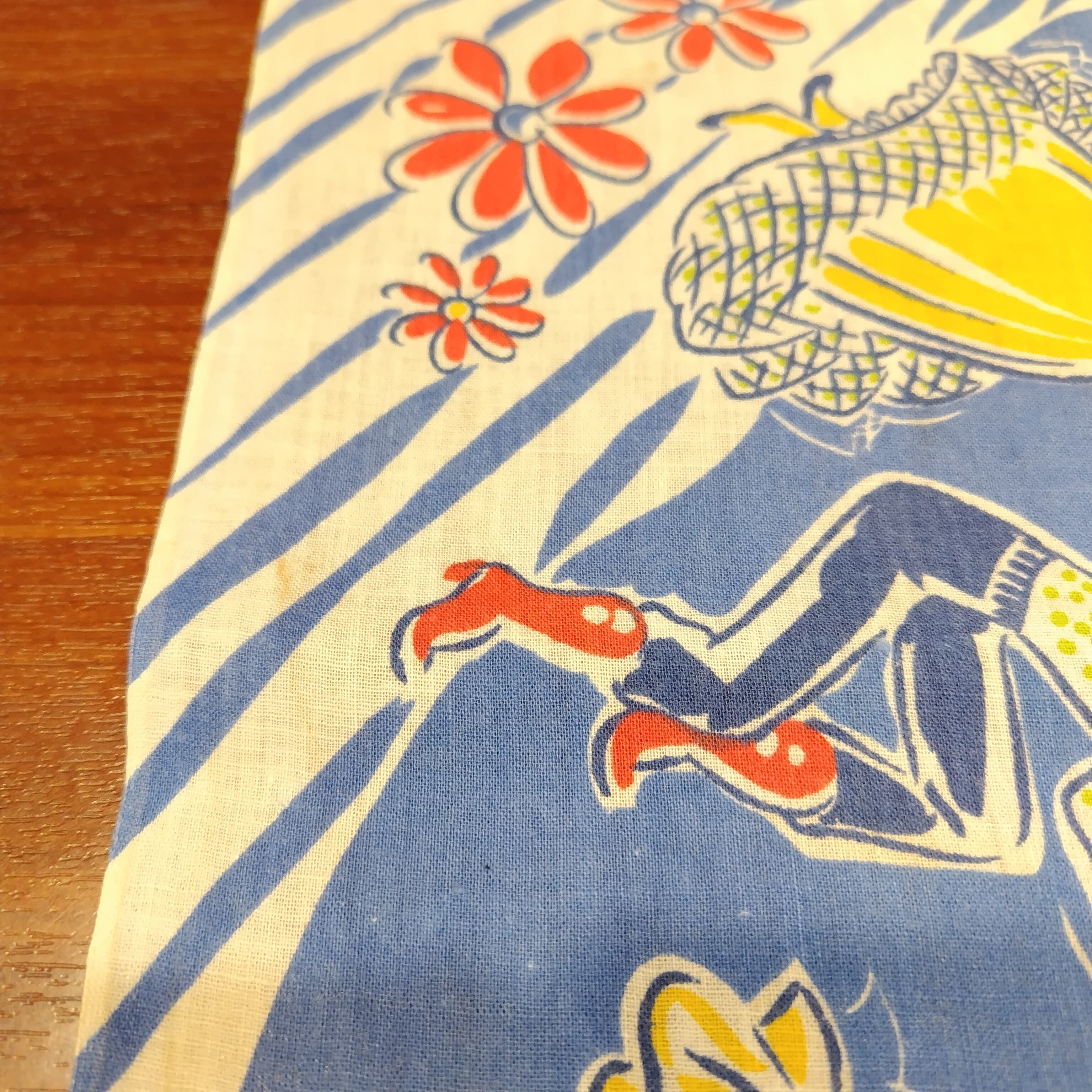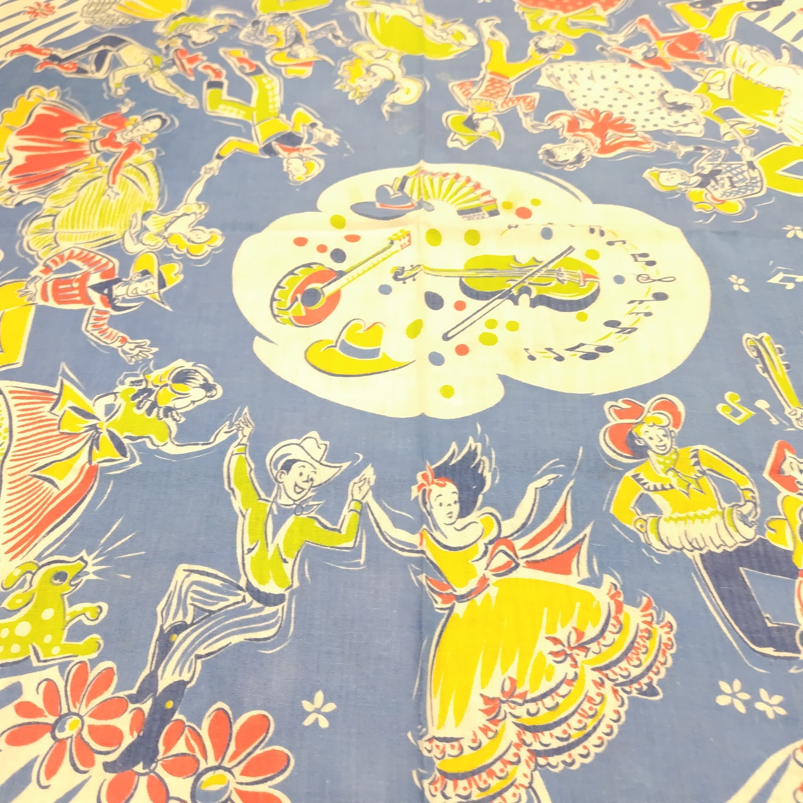 レア 40s ビンテージ ダンス柄 ブルーバンダナ 大判 両耳