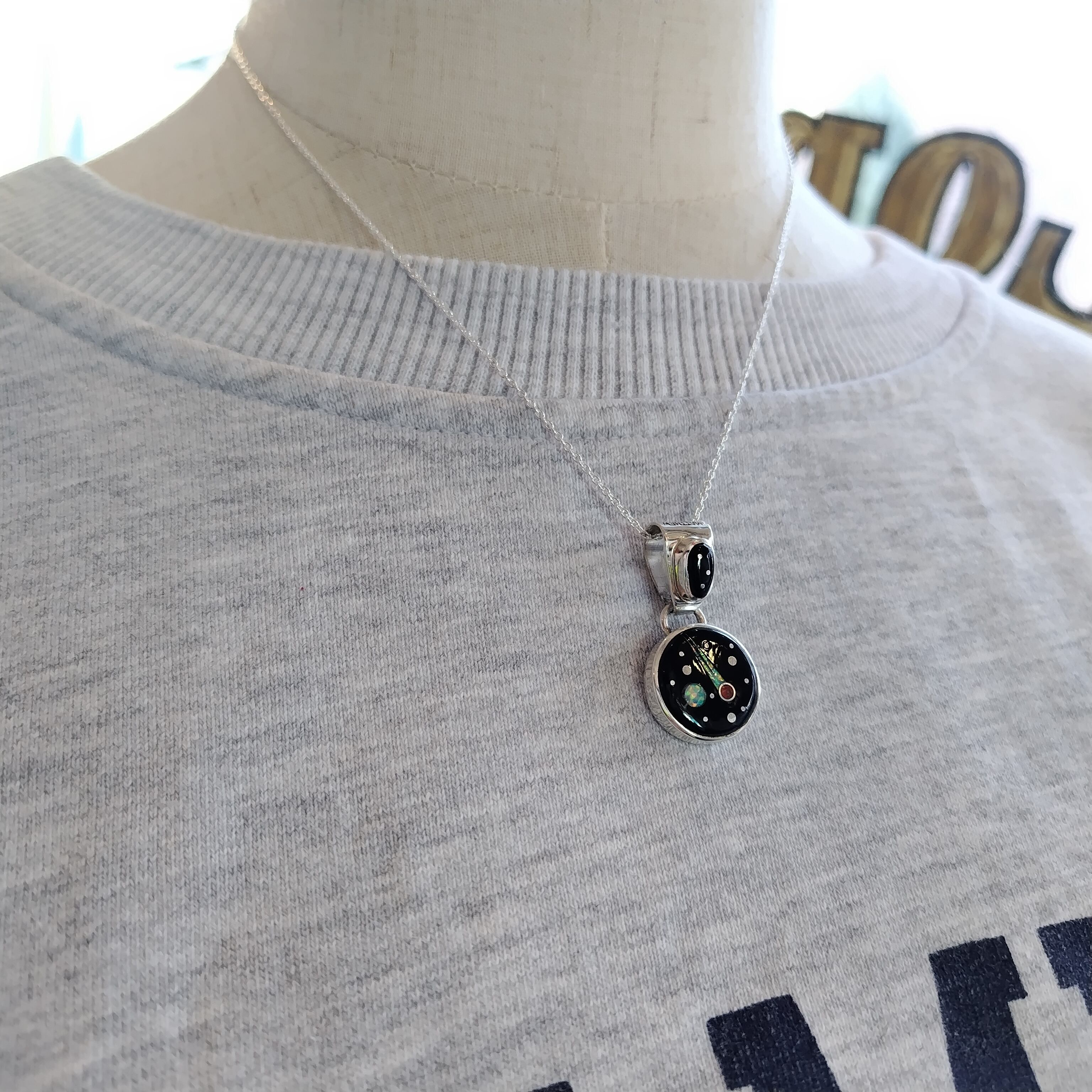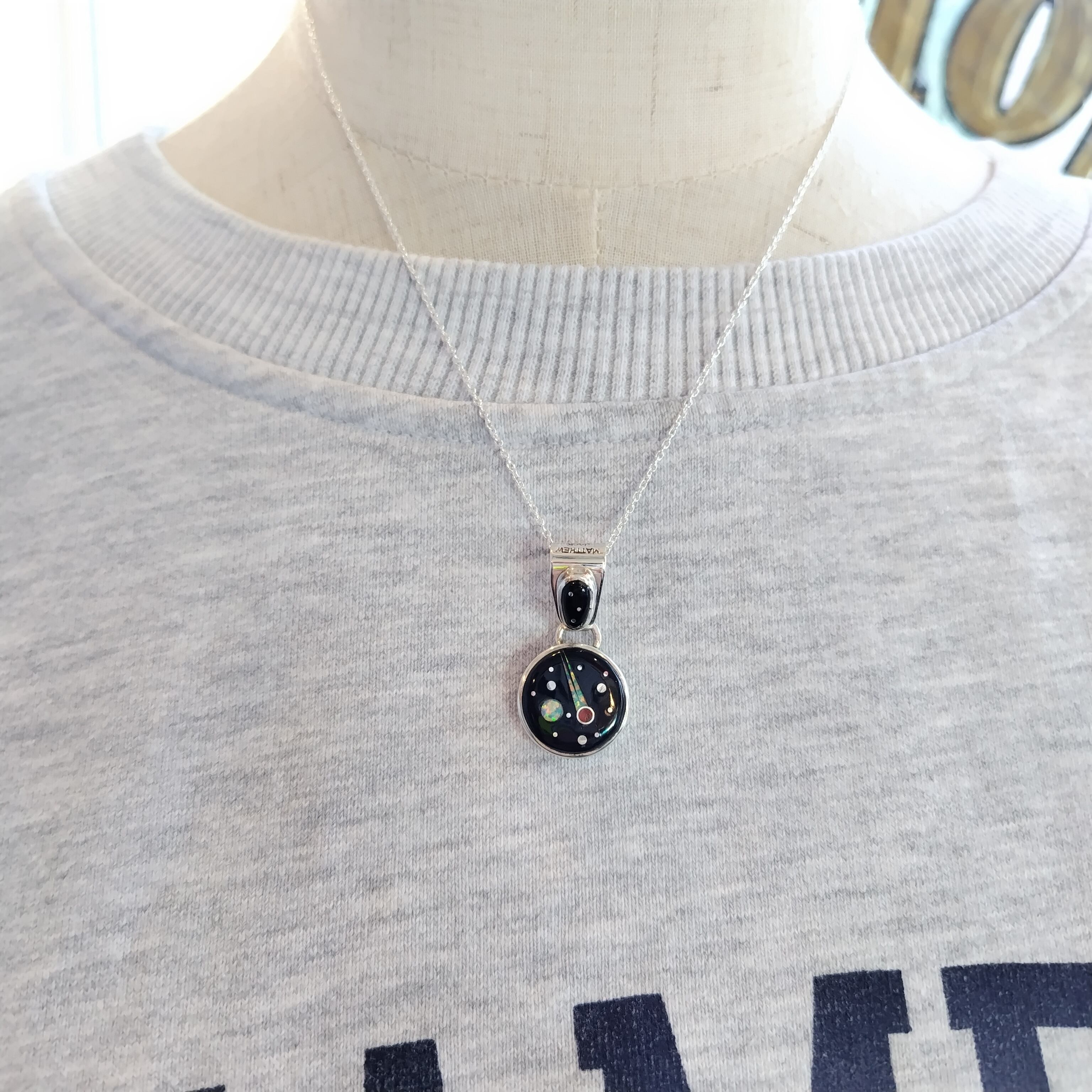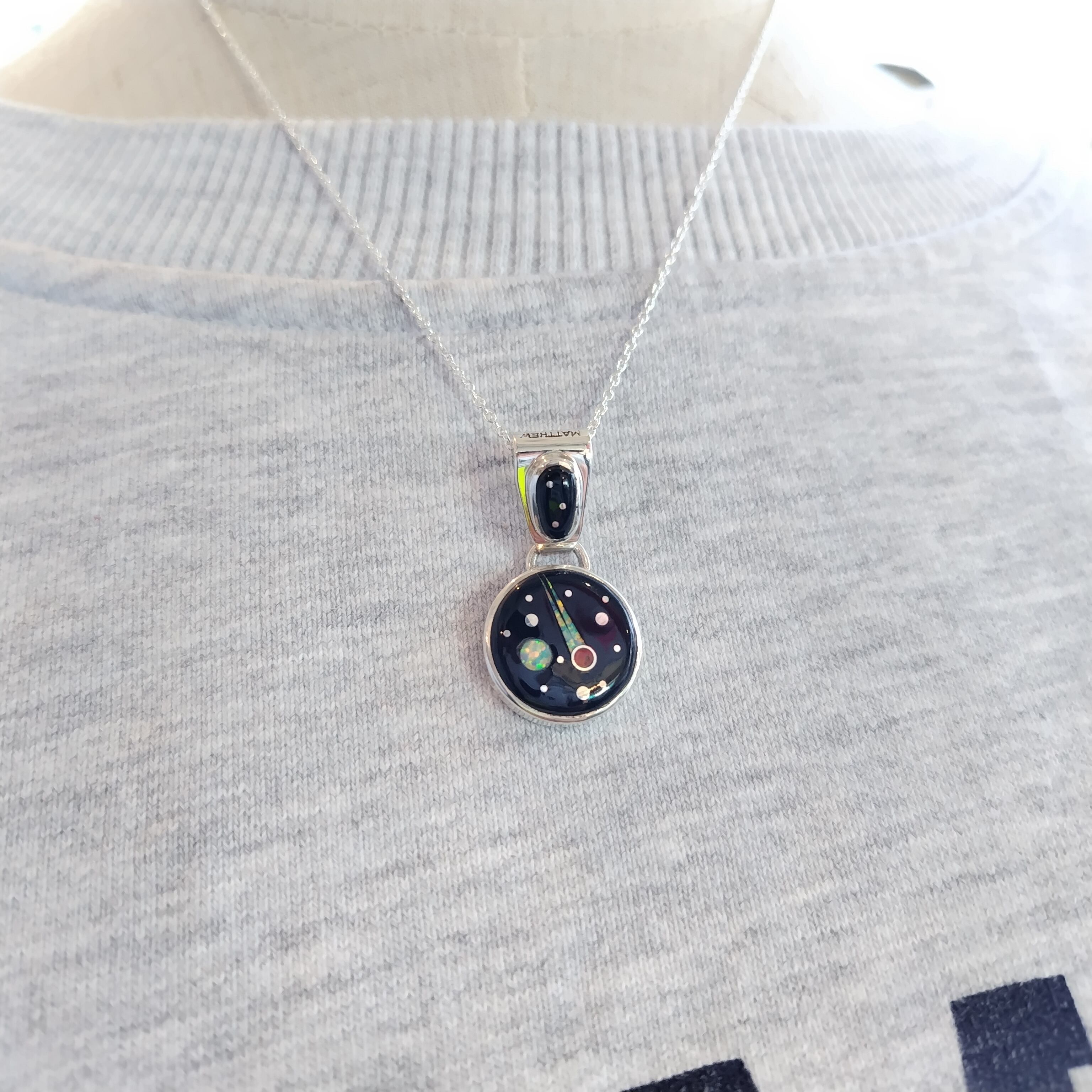 ナバホ Matthew Jack 宇宙デザイン インレイ シルバートップ 45cm シルバーチェーン付き インディアンジュエリー