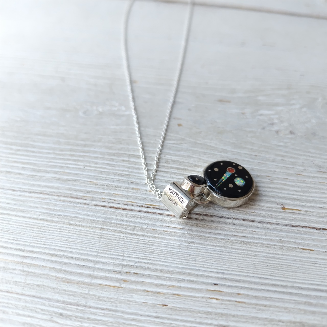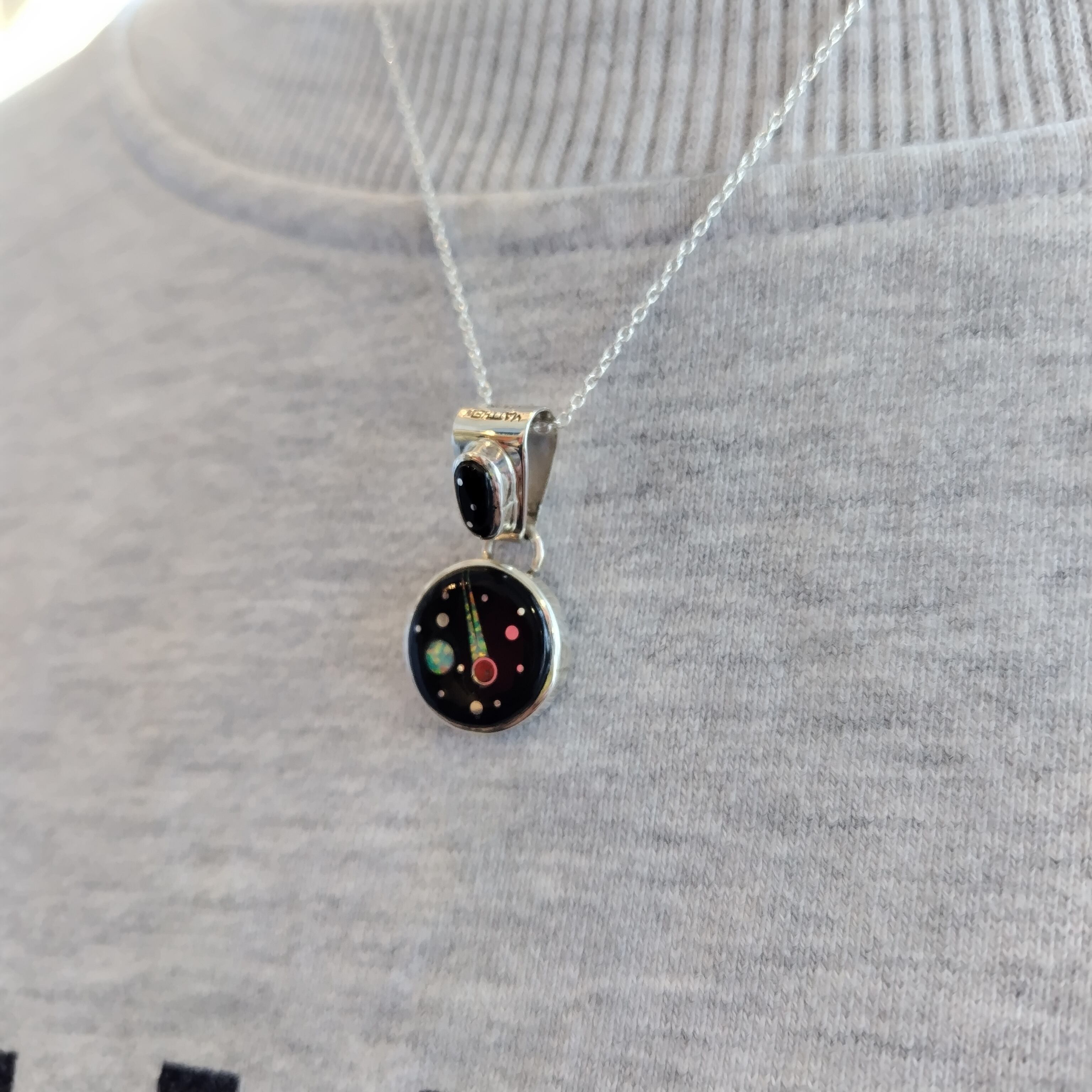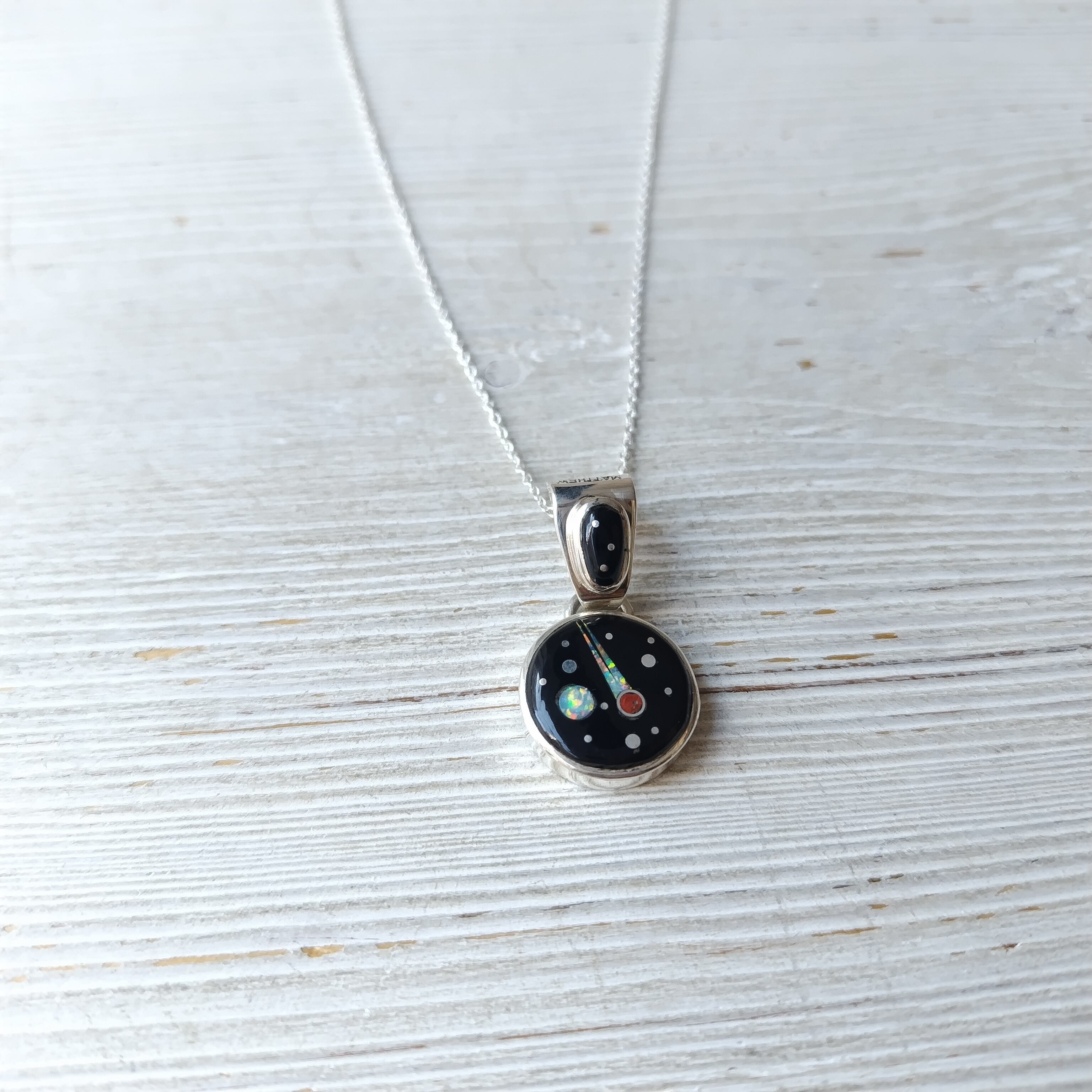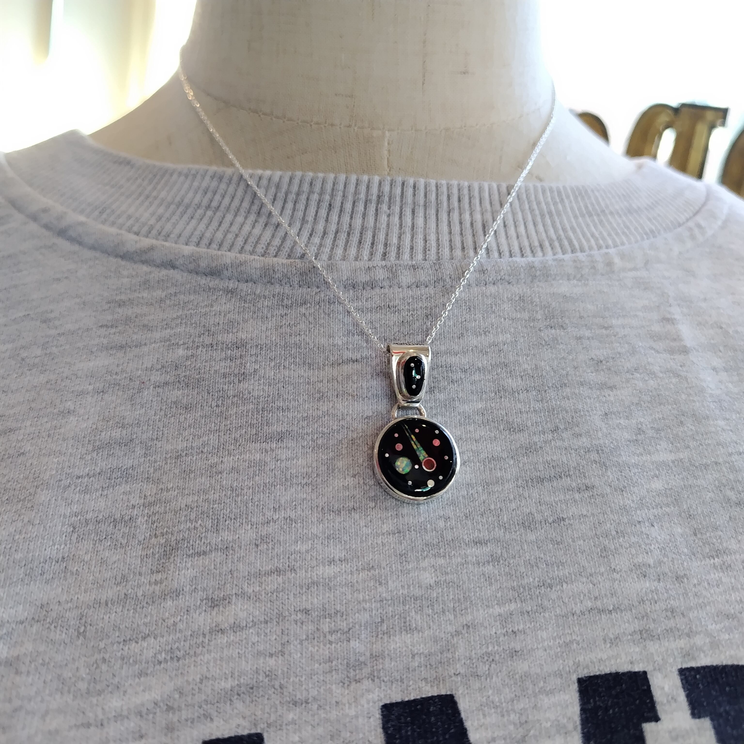 ナバホ Matthew Jack 宇宙デザイン インレイ シルバートップ 45cm シルバーチェーン付き インディアンジュエリー
