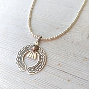 ナバホ サンダーバード ナジャ Darrell CADMAN シルバートップ + ナバホパール シルバーネックレス 4mm玉 45cm インディアンジュエリー