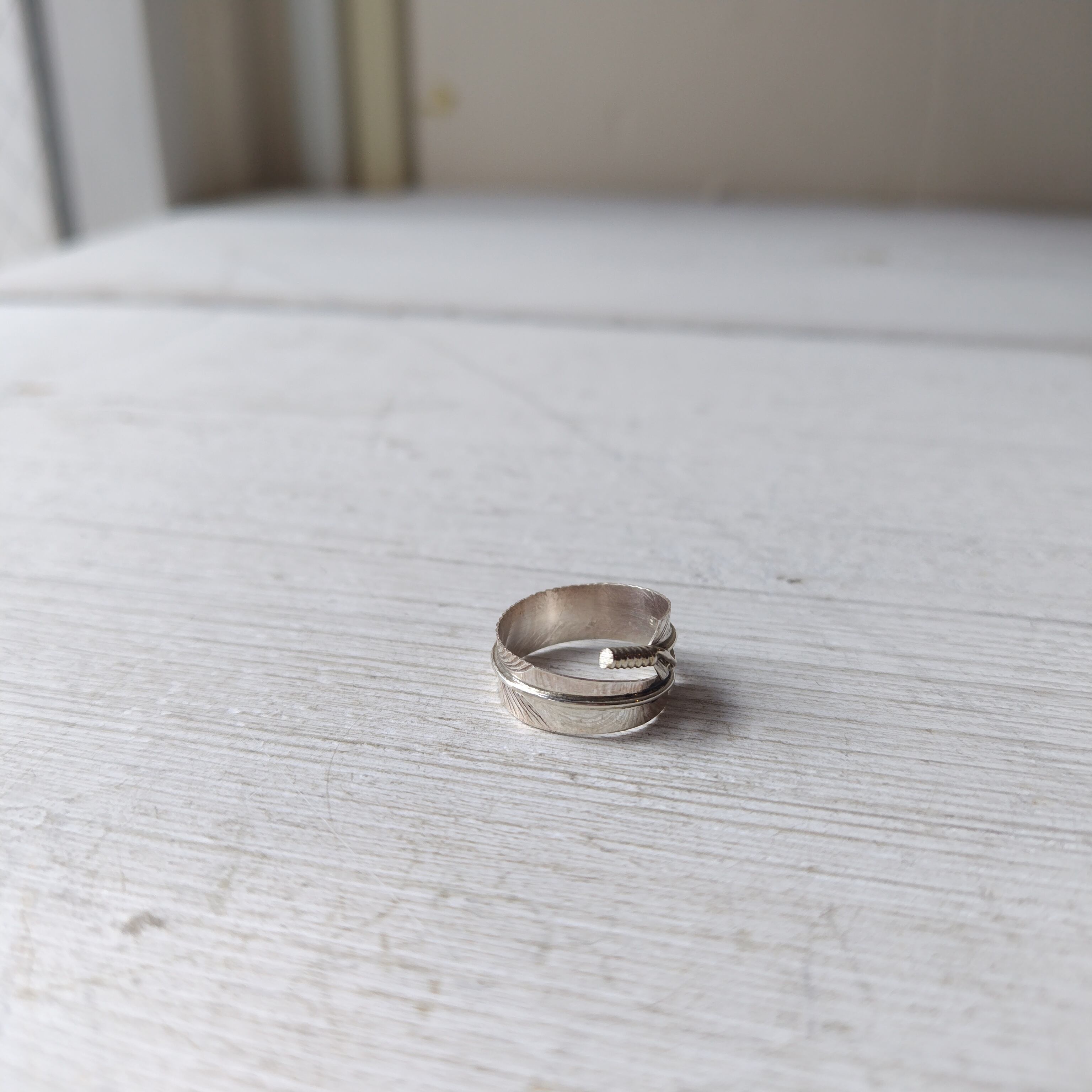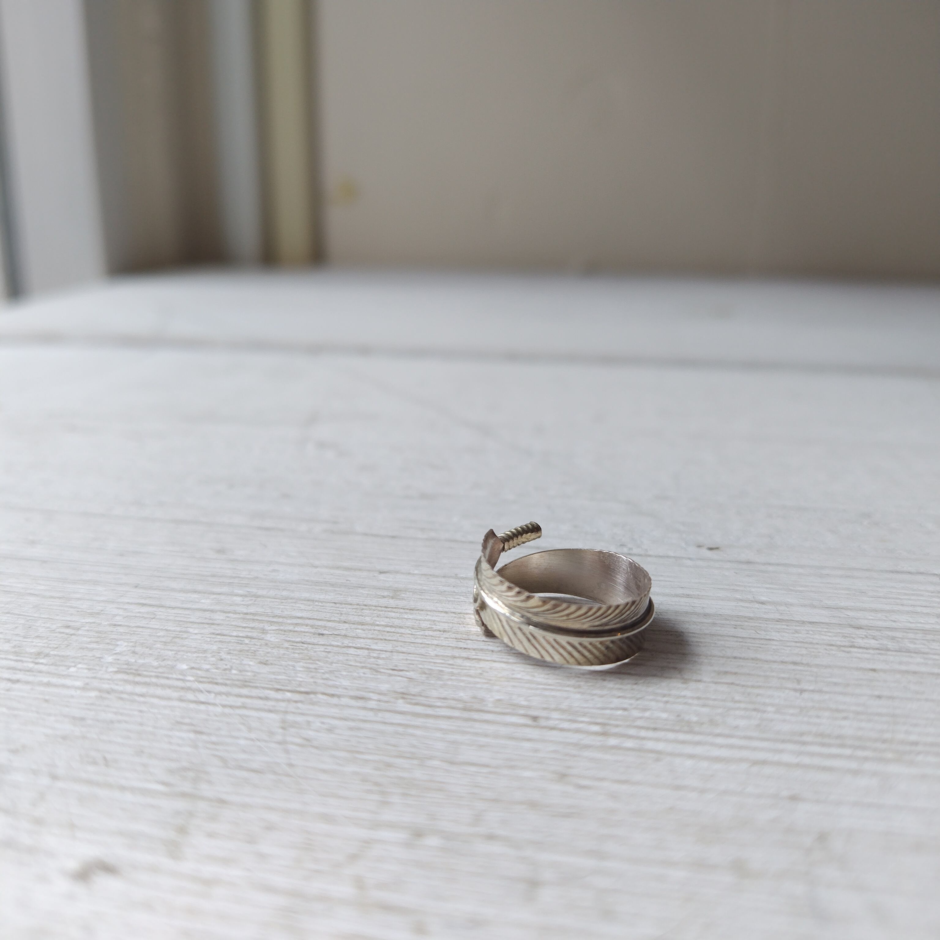12号前後 フリーサイズ ナバホ フェザー シルバーリング インディアンジュエリー