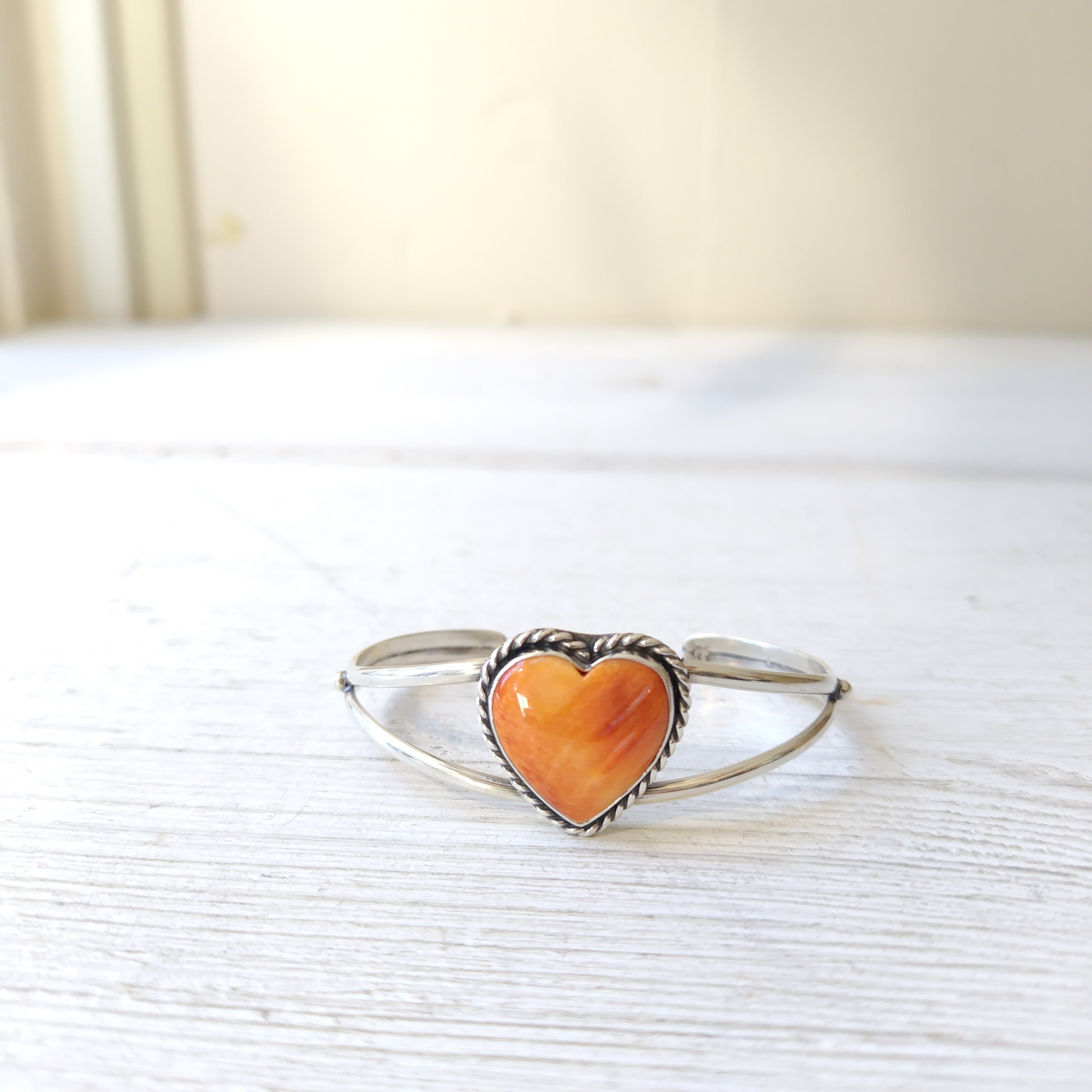 ナバホ SPINY OYSTER ハート シルバーバングル インディアンジュエリー