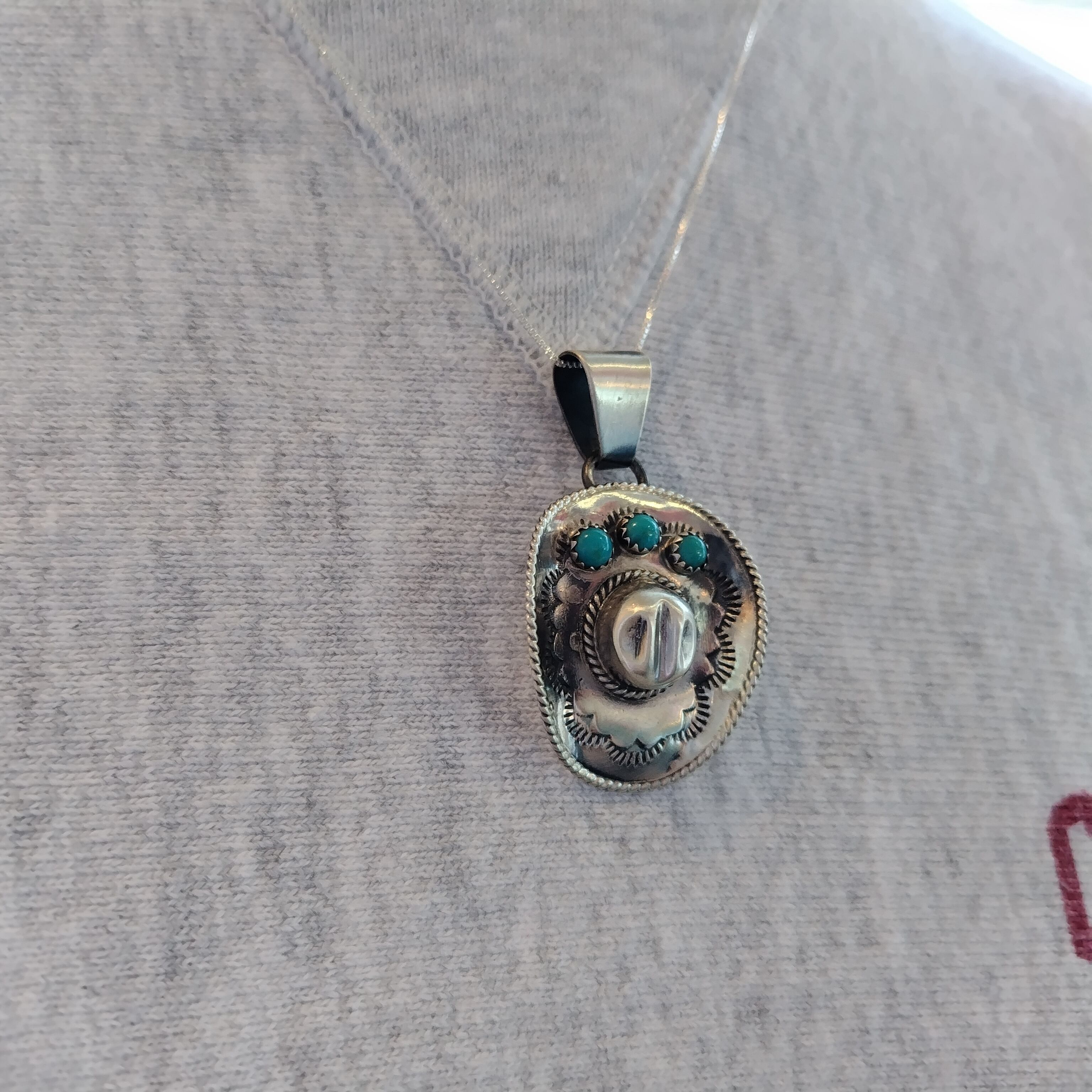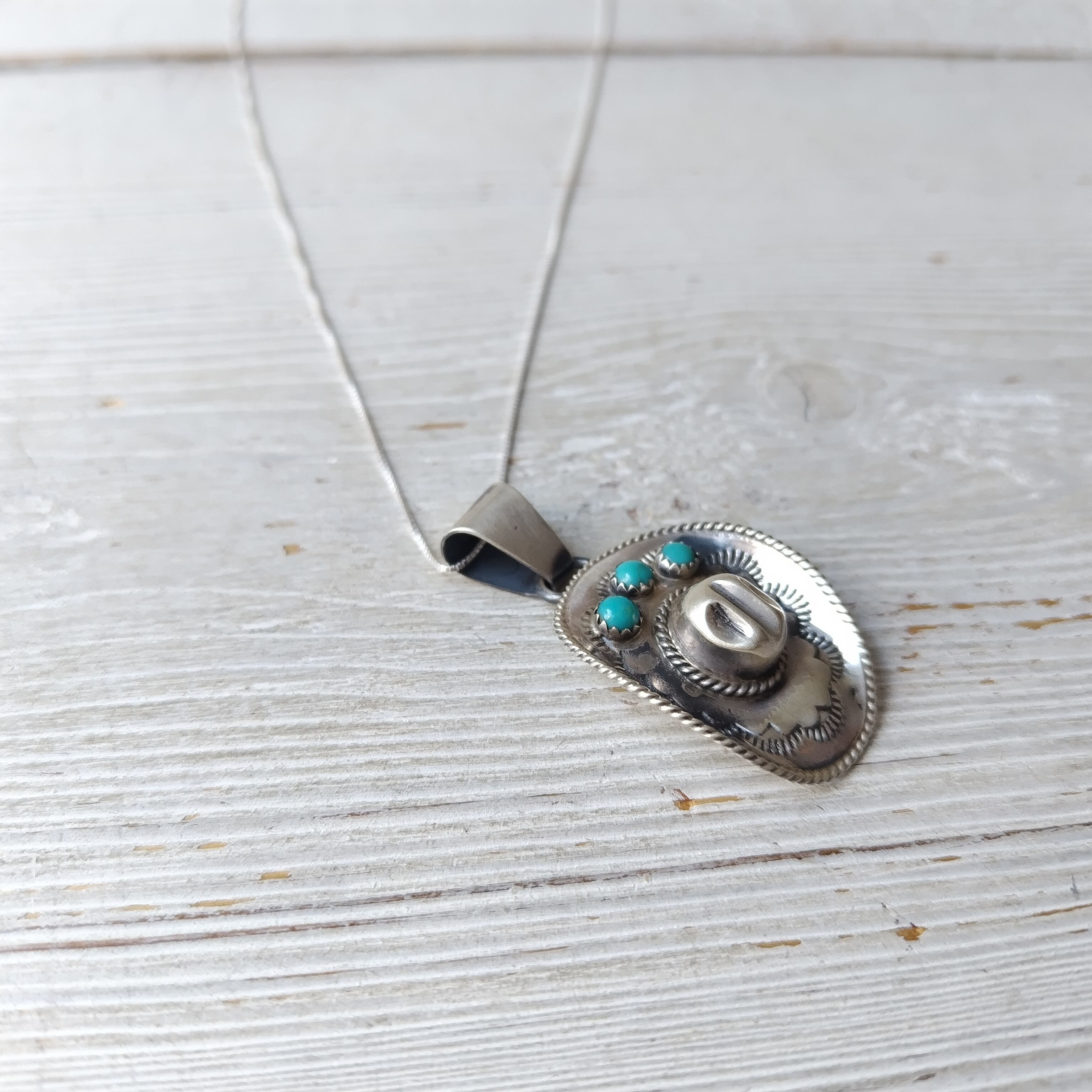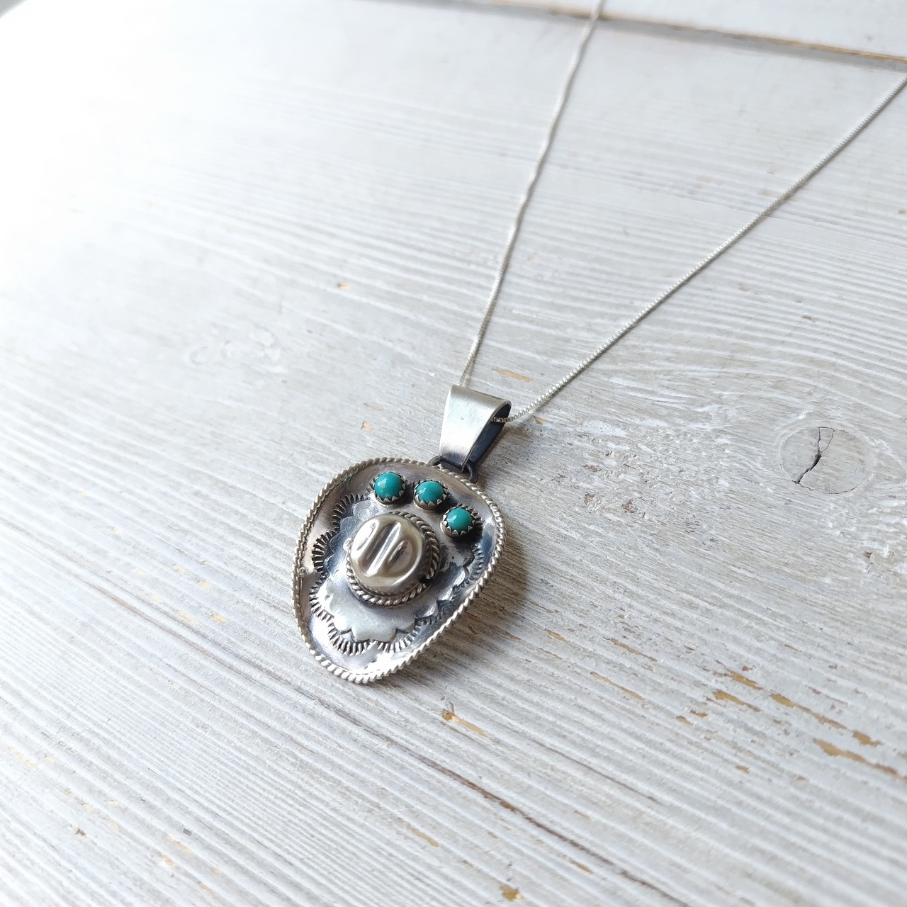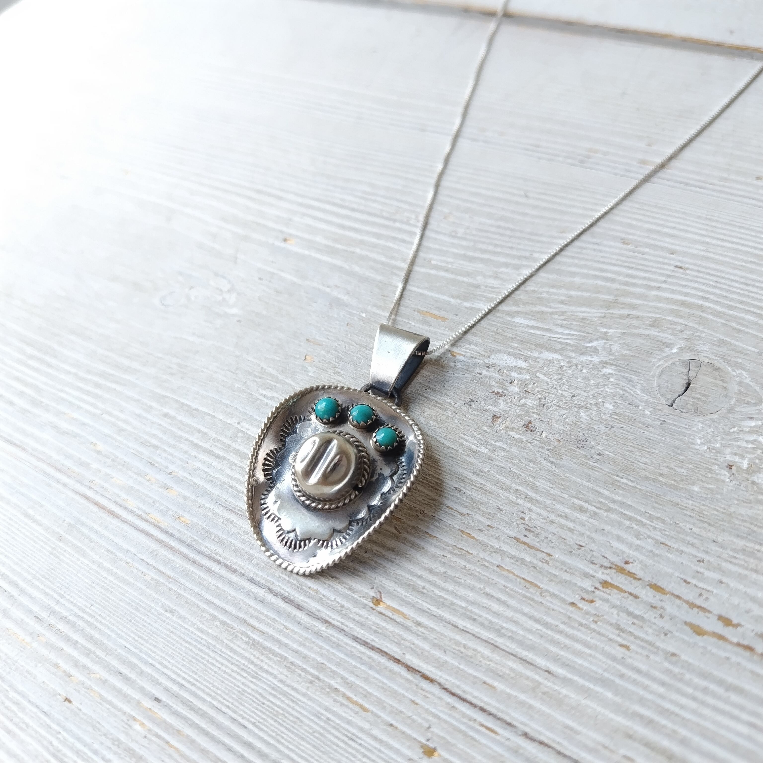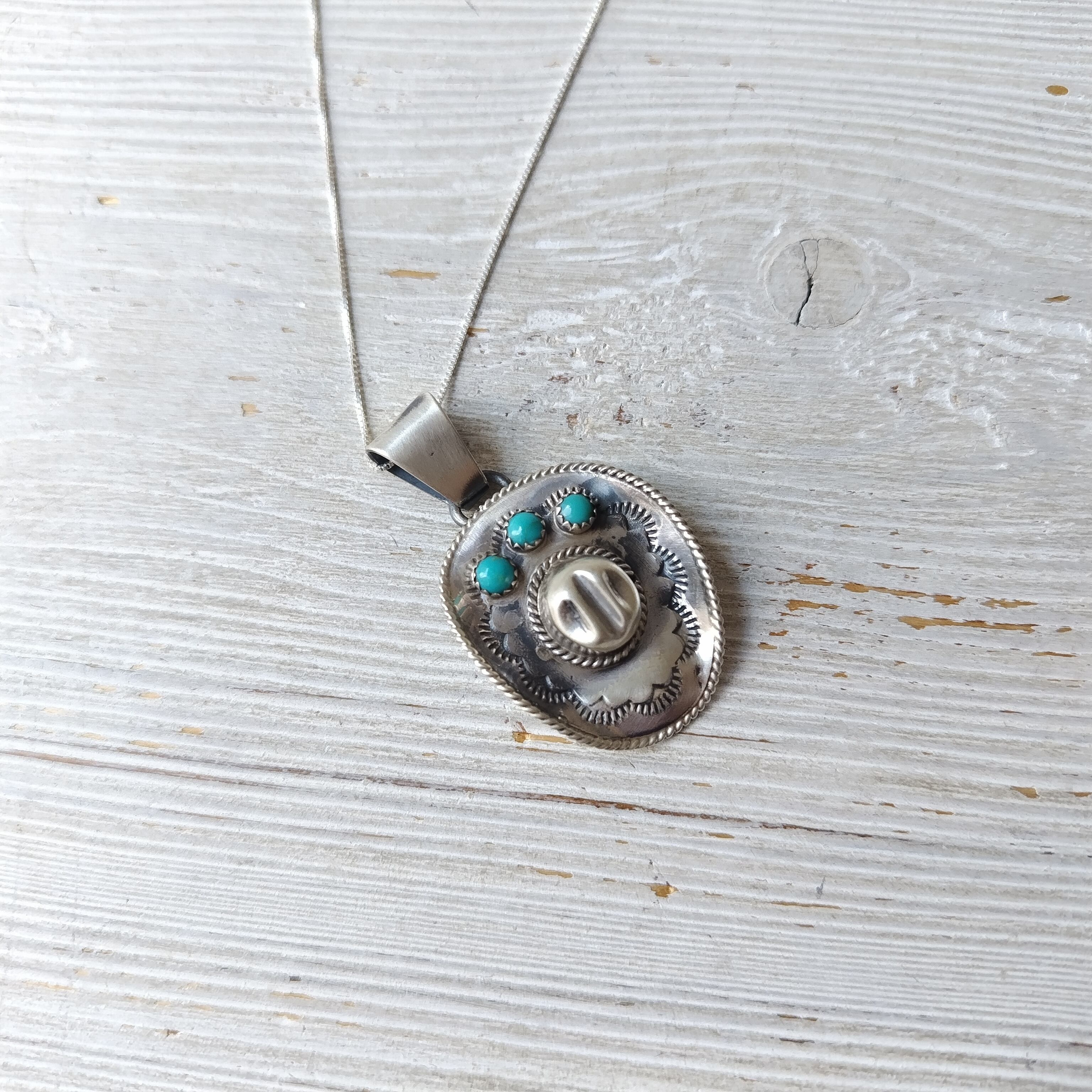 ナバホ ターコイズ ウエスタンハット シルバーネックレス インディアンジュエリー